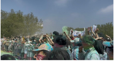 熱場環(huán)節(jié),參賽者們在志愿者的帶領(lǐng)下,隨著動感的音樂節(jié)奏,將五彩斑斕的粉末高高揚起。剎那間,絢麗的色彩在空中交織碰撞,每個人身上都沾染上快樂的氣息。