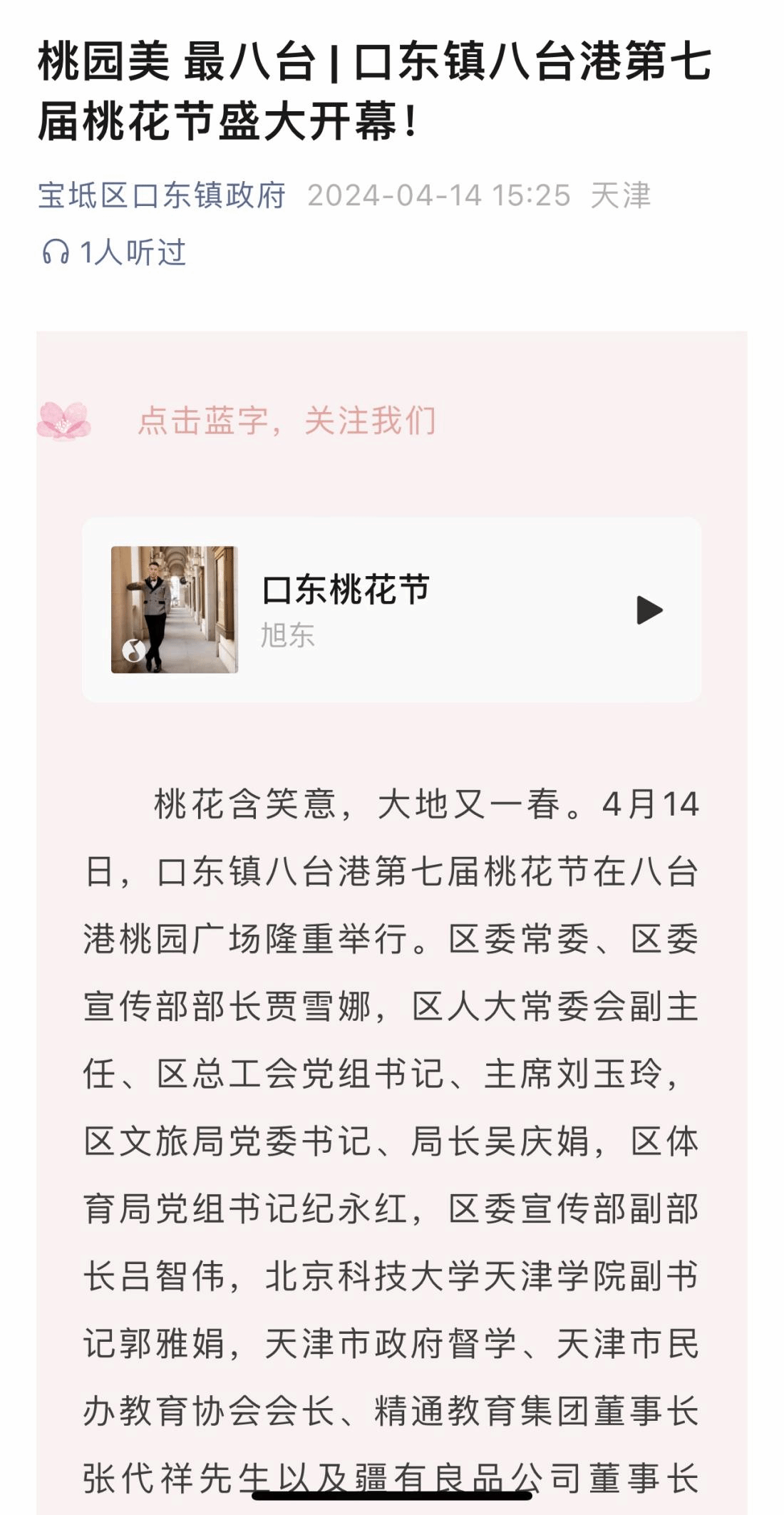 共赴桃花之約,盡享春日盛景。本次活動,北京科技大學天津學院團委開啟了一場青年學生與鄉村振興的“雙向奔赴”,不僅得到了主辦方的高度評價和認可,也受到了人民網、新華社、網易新聞、寶坻融媒等多家媒體的宣傳報道。
