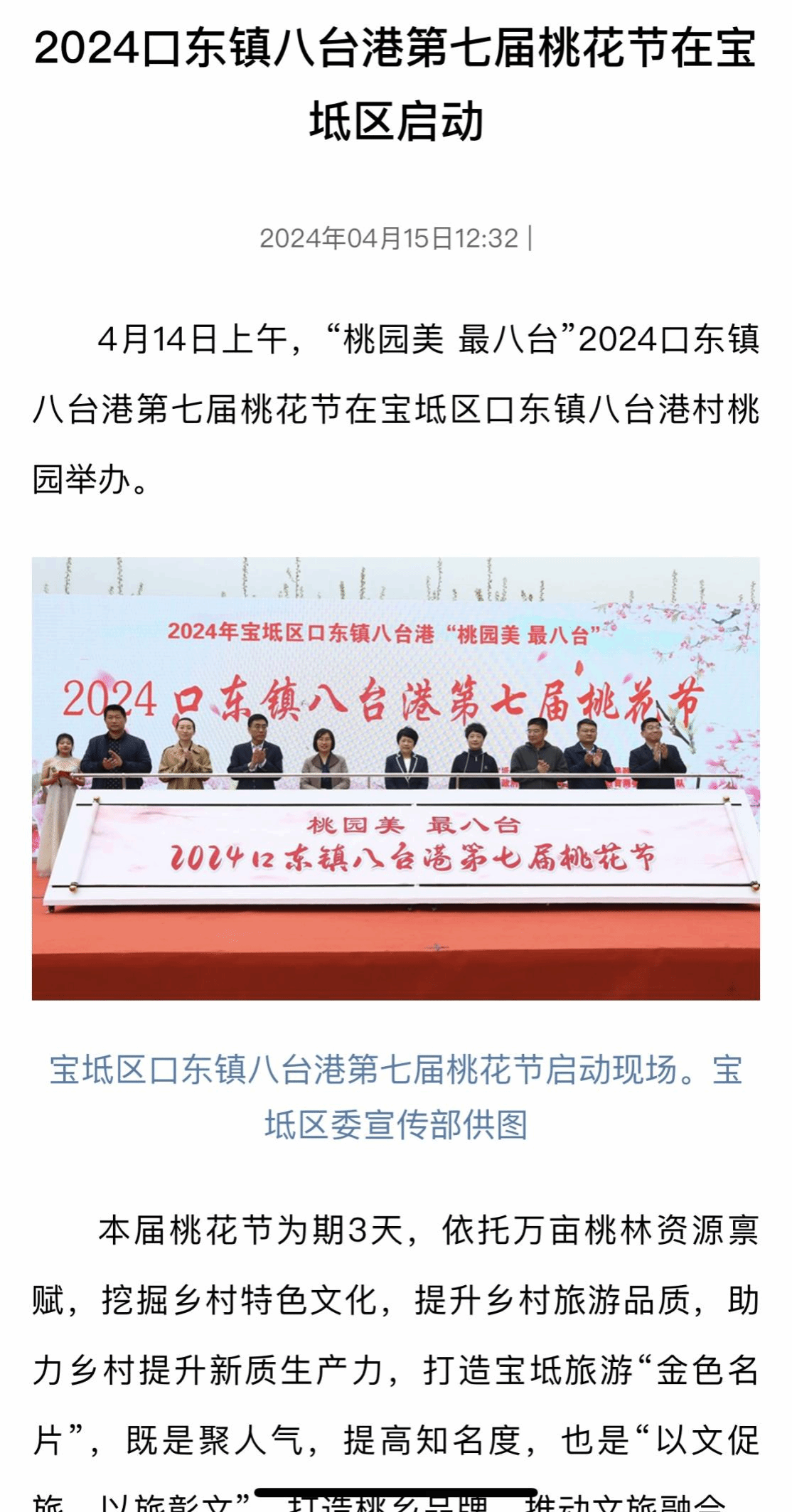 為全面貫徹黨的二十大和二十屆二中全會精神,深入學習貫徹習近平總書記視察天津重要講話精神,貫徹落實鄉村振興戰略,北京科技大學天津學院團委組織60余名學生赴口東鎮八臺港村參加“桃園美 最八臺”2024口東鎮八臺港第七屆桃花節活動,豐富鄉村文化內涵,提高鄉村旅游品質,助力鄉村經濟發展,為鄉村振興貢獻青春力量。