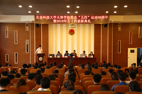 在五四青年節(jié)到來之際,習(xí)近平總書記于5月2日到北京大學(xué)考察并發(fā)表重要講話,對廣大青年提出了五點要求。為進(jìn)一步學(xué)習(xí)領(lǐng)悟習(xí)近平總書記重要講話精神,繼承“五四”傳統(tǒng),弘揚“五四”精神,表彰在團(tuán)學(xué)工作中作出突出貢獻(xiàn)的先進(jìn)集體和個人。2018年5月3日,北京科技大學(xué)天津?qū)W院紀(jì)念五四運動九十九周年暨2018年五四表彰典禮在理工館學(xué)術(shù)報告廳隆重舉行。北京科技大學(xué)天津?qū)W院黨委副書記葉振楠、學(xué)生處副處長田勇、團(tuán)委書記殷實、團(tuán)委副書記王研、李洋以及各院系分團(tuán)委書記、各團(tuán)學(xué)組織指導(dǎo)老師、各基層團(tuán)組織負(fù)責(zé)人以及團(tuán)員代表共200余人參加此次典禮。團(tuán)委副書記張?zhí)砩?/font>主持典禮。