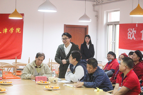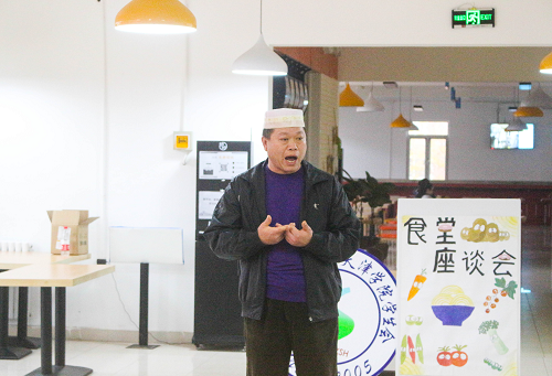 2018年11月14日下午15:30,北京科技大學天津學院學生會常代共建委員會聯合后勤處,在二食堂舉辦以“欲食天下新鮮,安全牢記心間”為主題的食堂座談會,出席本次座談會的有后勤處飲食中心主任趙學權老師,學校食堂經理及工作人員和學生代表們。