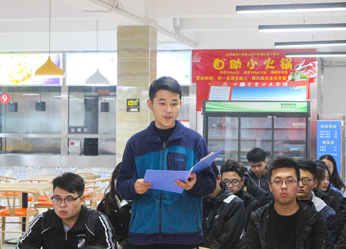 活動開始由主持人為大家作前期工作匯報,就前期檢查食堂的工作流程和檢查過程中發現的問題以及同學們線上線下調查問卷的反饋進行一一匯報。由周光宇同學代表廣大同學對食堂提出了關于衛生,食品和工作人員的服務三方面的建議。這些建議和看法來源于廣大同學線上線下調查問卷的匯總,有效的向食堂方面傳達了同學們的心聲。