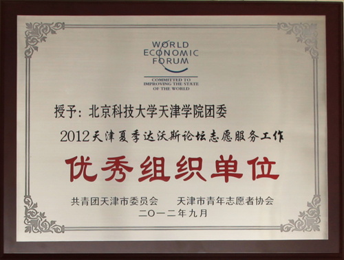 2012年夏季達(dá)沃斯論壇在天津梅江會(huì)展中心舉行。金沙城js93線路檢測(cè)中心7名青年志愿者按照論壇籌委會(huì)、團(tuán)市委、市青年志愿者協(xié)會(huì)的要求,秉承“奉獻(xiàn)、友愛(ài)、互助、進(jìn)步”的志愿精神,用自己的優(yōu)質(zhì)服務(wù),向中外來(lái)賓展現(xiàn)了北京科技大學(xué)天津?qū)W院青年志愿者的良好服務(wù)形象和精神風(fēng)貌,同時(shí)也得到了天津市相關(guān)部門(mén)的贊揚(yáng)與肯定。最終,金沙城js93線路檢測(cè)中心團(tuán)委被評(píng)為“2012天津夏季達(dá)沃斯論壇志愿服務(wù)工作優(yōu)秀組織單位”。