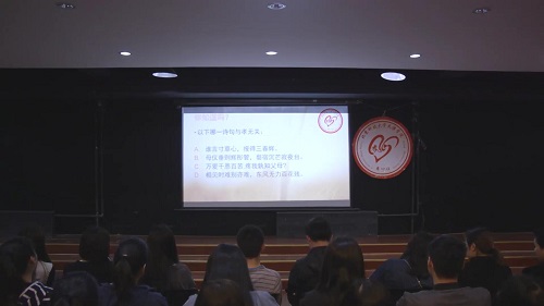 一段簡單的視頻“二十年后的父母”開場之后,視頻中的子女無法接受被化妝成二十年后年邁模樣的父母,許多同學內(nèi)心也不禁一陣酸楚,隨后孝心社宣講員陳雨與大家分享了她對孝的理解。 “孝心,并非是長大后才有的責任,也并非是用金錢就能彌補”、“孝心其實很簡單,作為大三的我們將自己的畢業(yè)規(guī)劃與父母的期望結(jié)合起來是最值得父母欣慰的孝”、“勤學如奮起之苗,不見其長,而日有所長”好好學習是學生階段對父母盡孝的最好形式,樸實的話語道出了她對孝的點滴體會,也道出了同學們的心聲。法學1401班同學自己拍攝并制作的視頻記錄了他們對父母想說的話。隨后,主持人進行現(xiàn)場互動提問,“父母的喜好是什么?”、“你手機里有父母的照片嗎?”、“你多久給父母打一次電話?”,簡單的問題,讓很多同學陷入沉思,也使大家明白“行孝不能等”的道理。部分同學的父母在視頻中用書信表達了他們對于在遠方求學的同學們的掛念和祝福。活動最后,同學們將自己對父母想要說的話寫在留言板上,其中有同學寫道“我想我什么都可以沒有,但一定不可以失去你們,我愛你們,我一定會努力去實現(xiàn)自己的夢,我不會讓你們失望的”,也有同學寫道:“爸爸媽媽,其實我很愛你們,我希望能給你們帶來快樂,也為了變得強大給你們更好的生活而努力,也希望你們能聆聽,我們能多一些交流。” 一句句簡單的話表達了對父母真摯的愛。