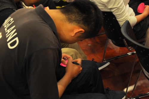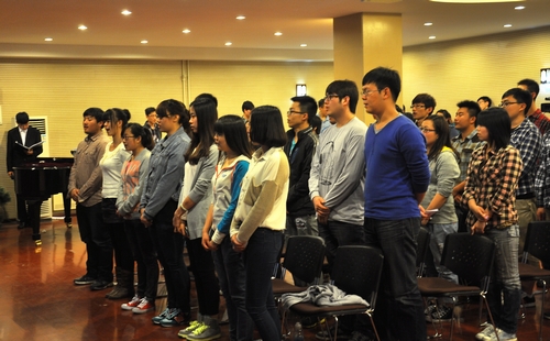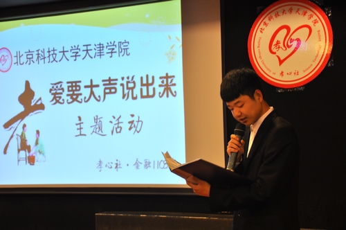 一段簡單的開場之后,孝心社張永康同學(xué)首先與大家分享了他對孝的理解。 “孝心,并非是長大后才有的責(zé)任,也并非是用金錢就能彌補(bǔ)”、“孝心其實(shí)很簡單,比如,為家里清掃一次房間;為母親倒一杯水;為父親捶一次背……”樸實(shí)的話語道出了他對孝的點(diǎn)滴體會(huì)。金融1103班班同學(xué)自己拍攝并制作的視頻記錄了他們對父母想說的話。孝心社劉曉通過自己的親身經(jīng)歷告訴了大家“行孝不能等”這個(gè)道理,很多同學(xué)聽完之后都默默的擦起了眼淚。李翔同學(xué)演唱的《父親》也深深的打動(dòng)了大家。部分同學(xué)的父母用電話錄音的方式表達(dá)了他們對于在遠(yuǎn)方求學(xué)的同學(xué)們的掛念和祝福。全班同學(xué)和著鋼琴伴奏共同演唱了《燭光里的媽媽》,歌聲傳遞了同學(xué)們對爸爸媽媽的祝福。活動(dòng)最后,同學(xué)們將自己對爸爸媽媽想要說的話寫在留言板上,一句句簡單的話表達(dá)了對父母真摯的愛。