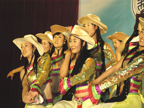 開場歌伴舞《今夜無眠》。 小品《Q版伯哥與臺(tái)妹》 藏族舞蹈《溜溜的康定,溜溜的情》。 組合唱《還剩下些什么》。 民樂小合奏《喜洋洋》。 由任課教師表演的時(shí)裝秀。 合唱團(tuán)表演的大合唱《回憶》、《同一首歌》。