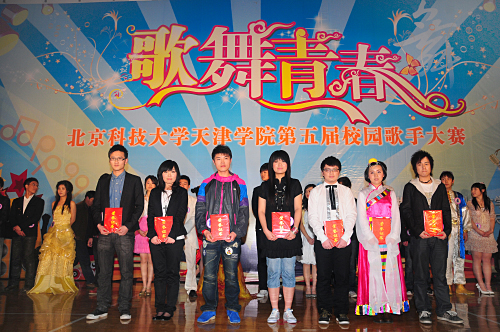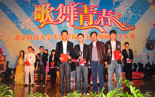 4月14日晚,由共青團北京科技大學天津學院委員會主辦、學生會承辦的“歌舞青春”北京科技大學天津學院第五屆校園歌手大賽暨2010年夏日文化廣場開幕式在體育館隆重舉行。出席本次大賽的嘉賓有:北京科技大學黨委副書記張文明教授、北京科技大學天津學院院長郭景文、學院黨委書記王斌、副院長曹連東、副院長胡明、財務總監肖祖剛、機械系主任劉立、辦公室主任白亮、實驗技術中心主任許學東、土木系主任劉勝富、管理系主任梁桂川、學生處處長盛佳偉、現代教育中心主任范麗麗、現代教育中心常務副主任葉振楠及各系黨總支書記等。