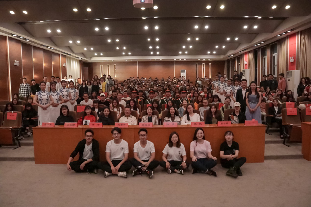 大會伴著同學們的熱烈掌聲結束!大會結束后,學生藝術團全體成員合影留念。