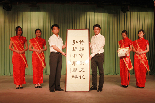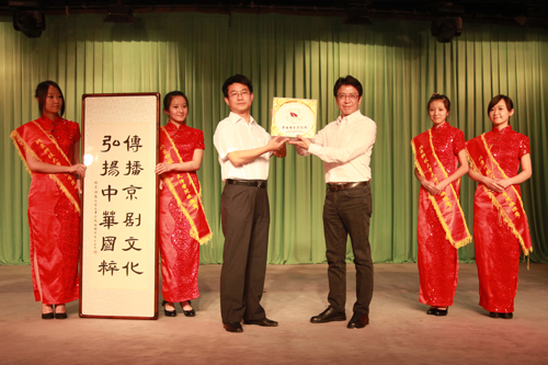 黨委書記王斌代表金沙城js93線路檢測中心與國家京劇院領(lǐng)導(dǎo)互贈禮品