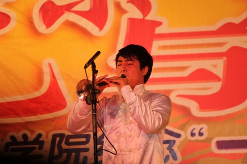 七點(diǎn)整,主持人熱情洋溢的開(kāi)場(chǎng)拉開(kāi)了整場(chǎng)晚會(huì)的序幕。春天永遠(yuǎn)是藝術(shù)家永恒的主題,首先登場(chǎng)的節(jié)目是管弦樂(lè)團(tuán)帶來(lái)的合奏《春之聲圓舞曲》。一曲獨(dú)唱《暗香》之后,管弦樂(lè)團(tuán)帶來(lái)的小合奏《賽馬》仿佛讓大家置身于寬廣的大草原上。戲劇社為觀眾獻(xiàn)上的小品《甄嬛外傳》,帶大家一同穿越,演繹了一場(chǎng)別開(kāi)生面的后宮爭(zhēng)斗戲,引得觀眾陣陣笑聲,掌聲不斷。濃郁的民族風(fēng)格,強(qiáng)烈的時(shí)代氣息,鮮明的地域特色,厚重的藝術(shù)氛圍,舞蹈團(tuán)帶來(lái)的蒙古舞蹈《塔林畢斯貴》讓大家感受到了蒙古族女性的端莊典雅、豪邁奔放。合唱團(tuán)的小合唱《年輕的戰(zhàn)場(chǎng)》給正值青春年華,年少輕狂的年輕人無(wú)限鼓舞。民樂(lè)合奏《遠(yuǎn)情》讓大家感受到了民族音樂(lè)的獨(dú)特氣息。舞蹈團(tuán)的熱舞《bad girl》把晚會(huì)推上了一個(gè)高潮。合唱團(tuán)的獨(dú)唱《掉了》以輕盈的風(fēng)格與電聲樂(lè)隊(duì)帶來(lái)的激情樂(lè)隊(duì)演繹形成鮮明對(duì)比,給現(xiàn)場(chǎng)觀眾帶了了不一樣的視聽(tīng)感受。晚會(huì)特邀民樂(lè)團(tuán)外聘指導(dǎo)老師石露云輝演繹嗩吶獨(dú)奏《陽(yáng)光》,石老師的精彩演繹博得觀眾陣陣掌聲。合唱團(tuán)帶來(lái)的歌曲串燒激情而又精彩,唱出了歌曲的靈魂。舞蹈團(tuán)的經(jīng)典獲獎(jiǎng)節(jié)目《映山紅》為黨的十八大勝利召開(kāi)獻(xiàn)上了光榮禮贊。晚會(huì)在合唱團(tuán)的男女對(duì)唱《天地在我心》的歌聲下落下帷幕。演出中還播放了藝術(shù)團(tuán)日常排練以及指導(dǎo)教師寄語(yǔ)的視頻短片,短片回顧了藝術(shù)團(tuán)在過(guò)去幾年取得的各項(xiàng)成績(jī),展望了未來(lái)的奮斗目標(biāo)。