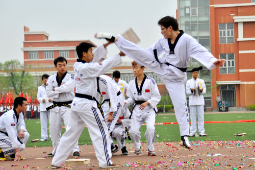 迎著春季輕柔的微風(fēng),本次運(yùn)動(dòng)會(huì)開(kāi)幕式在激昂的音樂(lè)聲中拉開(kāi)了序幕。土木工程系代表隊(duì)邁著鏗鏘有力的步伐進(jìn)入會(huì)場(chǎng),他們所表演的跆拳道、中國(guó)拳、舞獅以及雙截棍體現(xiàn)了土木學(xué)子身上獨(dú)有活力與朝氣。緊隨其后的是材料科學(xué)與工程系代表隊(duì),方隊(duì)伴隨著充滿活力的樂(lè)曲闊步向前,表演方隊(duì)所表演的“真人象棋”表現(xiàn)出材料系獨(dú)有的創(chuàng)意,贏得了在場(chǎng)學(xué)子的陣陣喝彩。接著,機(jī)械工程系代表隊(duì)昂首向主席臺(tái)走來(lái),別出心裁的舞蹈展現(xiàn)出了同學(xué)們之間的默契,展現(xiàn)出了同學(xué)們相互配合、共同進(jìn)步的特色。然后,經(jīng)濟(jì)系代表隊(duì)帶著自信的微笑緩緩向主席臺(tái)前進(jìn),具有中國(guó)文化特色的舞龍、腰鼓以及扇子舞,默契的配合使整個(gè)方隊(duì)的表演整齊化一,使在場(chǎng)觀眾眼前一亮。管理系代表隊(duì)、法律系代表隊(duì)、外語(yǔ)系代表隊(duì)滿懷豪情,邁著矯健的步伐來(lái)到會(huì)場(chǎng),各系帶來(lái)的舞蹈充滿了青春氣息。最后進(jìn)入會(huì)場(chǎng)的是藝術(shù)系代表隊(duì),舞者們以優(yōu)雅的華爾茲開(kāi)場(chǎng),又以激情澎湃的舞蹈結(jié)束。