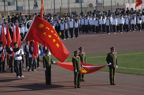 全體起立,升國旗,奏國歌