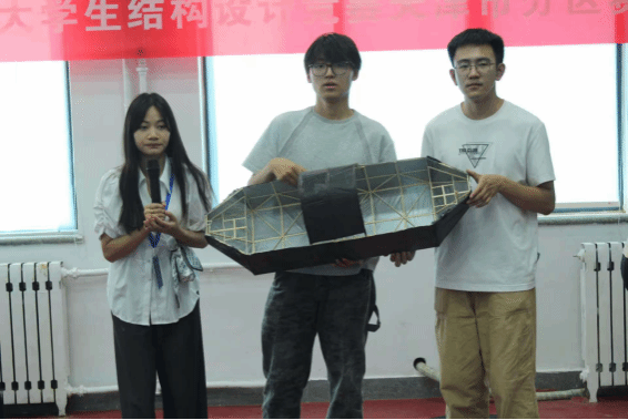 競賽現場,各參賽隊伍交叉輪次開展模型加載測試,同步分別進行作品設計闡釋與答辯環節,現場氣氛緊張而熱烈。評委會從模型制作的工藝精度、加載測試的性能表現及現場陳述的邏輯表達等維度,對各參賽作品進行綜合評審打分。