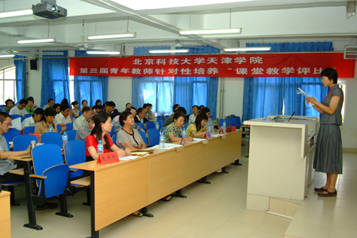 本屆青年教師針對性培養“課堂教學評比”活動的最后決賽,于9月8日下午在9教101教室舉行。來自北京科技大學的何柏芝、范玉妹、邱紅梅、尹常治和張丹丹五位專家擔任本屆比賽的特邀評委,同時擔任評委的還有學院院長郭景文、副院長胡明、教學助理、各系(部)主任、教學質量監控中心主任以及上屆評比中取得優異成績的兩位老師,到會評委共計22人。比賽由教務處吳平處長主持。