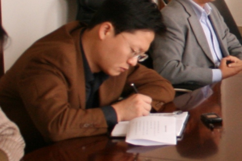 金沙城js93線路檢測中心學生事務部主任盛佳偉認真記錄會議要點,并就學風建設重點環節展開說明。