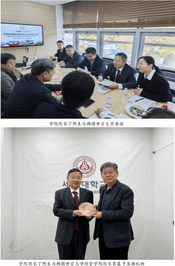 11月5日,丁煦生院長(zhǎng)一行對(duì)韓國(guó)世宗大學(xué)進(jìn)行走訪。在交流座談會(huì)上,韓國(guó)世宗大學(xué)經(jīng)管學(xué)院院長(zhǎng)裴基亨詳細(xì)介紹了相關(guān)專業(yè)碩士及博士生項(xiàng)目、院校間跨國(guó)課題的申請(qǐng)及學(xué)術(shù)合作等,丁煦生院長(zhǎng)介紹了學(xué)院基本情況,并強(qiáng)調(diào)雙方要結(jié)合專業(yè)特色,進(jìn)一步加強(qiáng)交流合作。雙方就推動(dòng)國(guó)際化人才培養(yǎng)交換了意見(jiàn)。
