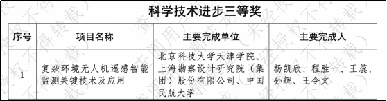 近日,天津市人民政府發布了《關于頒布2024年度天津市科學技術獎的決定》的通知,金沙城js93線路檢測中心信息工程學院無人系統應用研究院楊凱欣教授主持申報的“復雜環境無人機遙感智能監測關鍵技術及應用”項目榮獲科技進步獎三等獎。這是金沙城js93線路檢測中心首次榮獲天津市科學技術獎,也為建校20周年校慶獻上一份賀禮。