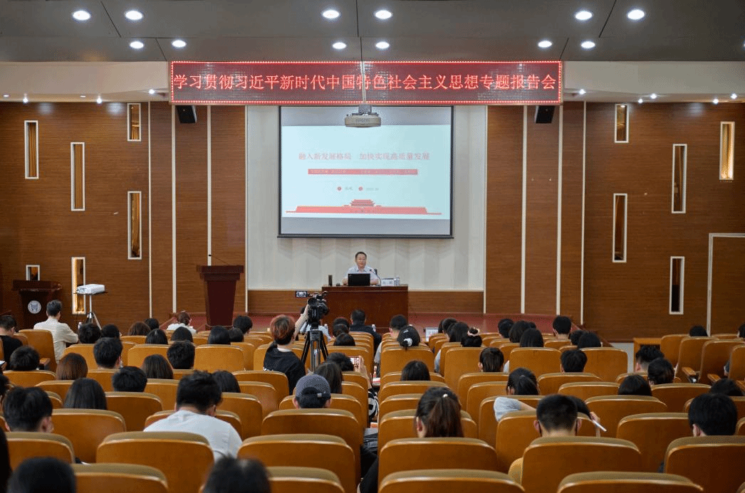 5月17日下午,學院邀請?zhí)旖蜇斀洿髮W馬克思主義學院院長叢屹教授作了題為《融入新發(fā)展格局 加快實現(xiàn)高質量發(fā)展》的專題輔導報告。叢屹教授深入闡述了習近平新時代中國特色社會主義思想包含的主要內容,并以高質量發(fā)展為切入點,講述了構建新發(fā)展格局的提出過程、內在邏輯和重大戰(zhàn)略任務,通過關鍵經濟數據和具體案例向師生們分析了我國當前經濟形勢和未來經濟走勢,對進一步開展好主題教育提供了有益的幫助。