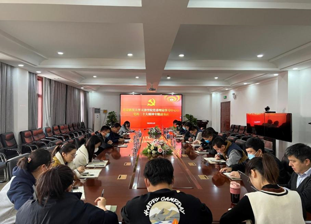 學院將黨的二十大精神納入到教職工理論學習計劃,黨員學習計劃,主題黨日、團日活動,以及各類師生黨員培訓中,充分運用好《黨的二十大報告輔導讀本》《黨的二十大報告學習輔導百問》等輔導材料,組織黨員干部報名參加“踔厲奮發、勇毅前行,加快推進教育強國建設”專題網絡培訓班,全面深入學習黨的二十大精神。