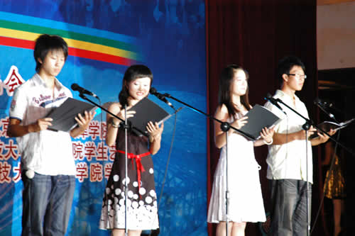 整臺晚會形式多樣、內(nèi)容多彩,把愉快的心情帶給了每一位師生及家長。其中,由07級新生帶來的獨舞與歌曲《我和我親愛的祖國》,引來了臺下觀眾的共鳴,掌聲歡呼聲不斷,把晚會氣氛推向高潮。