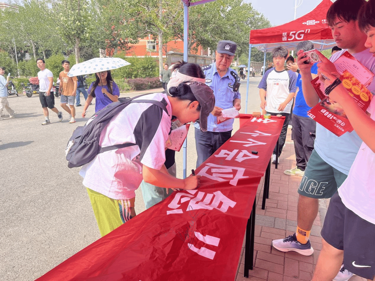 隨著下課鈴聲到來,京津新城消防救援站的指戰(zhàn)員、新城派出所民警、學(xué)院保衛(wèi)處工作人員和學(xué)生安全志愿者一起走上校園街頭,發(fā)放“暢通生命安全通道倡議書”,邀請廣大師生參與“安全承諾踐諾簽名活動”,爭做平安天院的建設(shè)者。