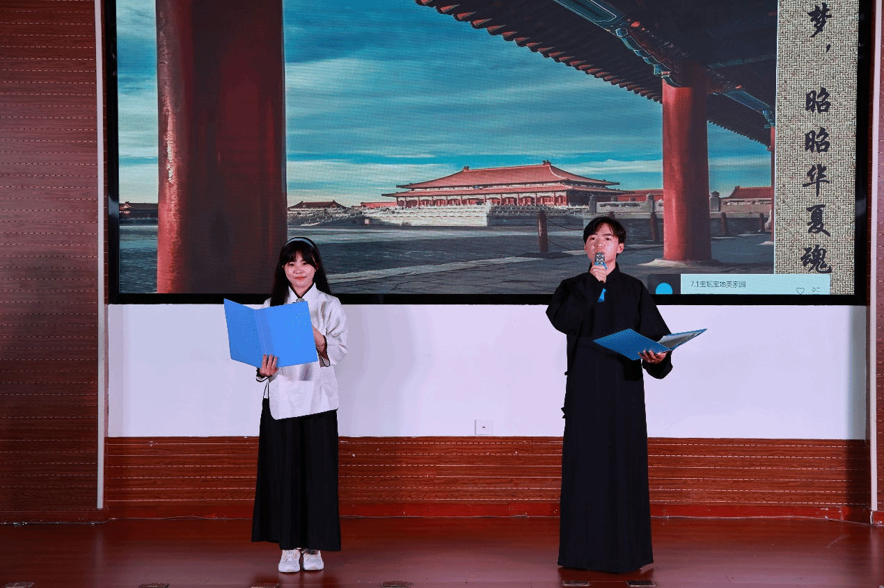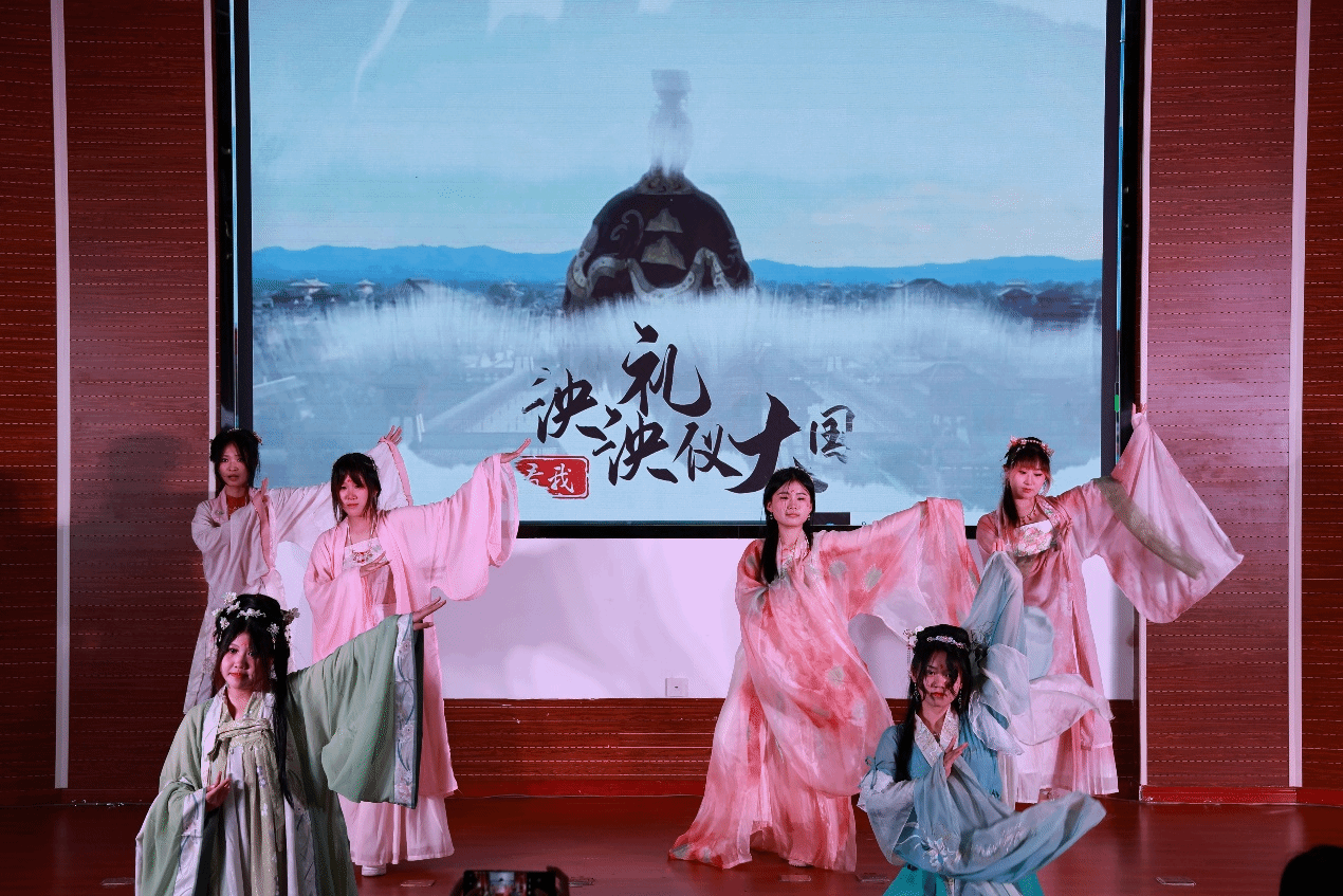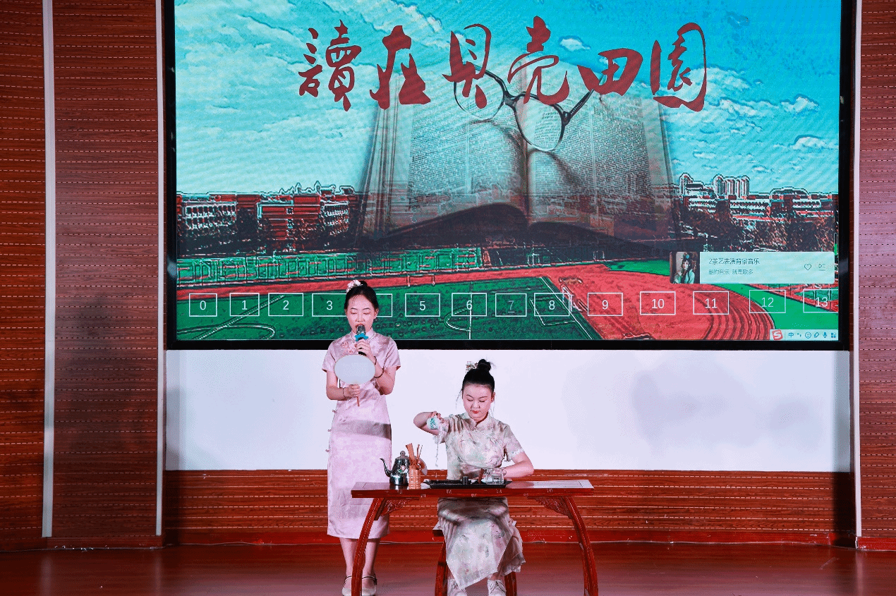 讀書文化節晚會在圖書館館員鄭妍和邢智軒帶來歌曲《讀書之歌》中拉開帷幕,歌聲以溫馨、勵志、正能量的氛圍讓現場聽眾仿佛陷入書的海洋,飽覽它的嫵媚與壯麗、感受歲月無法侵蝕的力量。余音未絕,學生藝術團茶筵社獻上茶藝表演《茗紅飄香》,通過對紅茶沖泡技藝的形象演示,生活化地給觀眾展示泡飲過程,使觀眾在優雅環境氛圍中得到美的享受和情操的熏陶;師生同臺太極書法《文墨武韻》上演,陳學思同學在推柔虛實、連綿暢順、行云流水的招式中與圖書館館員李朋洋、施念來同學揮灑自如的落筆有“異曲同工”之妙,共同彰顯出中國傳統文化之瑰麗;配音表演《這盛世如你所愿》極富感染力,讓我們時刻銘記先烈們的犧牲、珍惜當下幸福生活;歌曲《閱讀有光》點燃我們內心的火焰且增強無懼風雨,勇往直前的勇氣;《琵琶行》用音樂來表達意境,將聽覺抽象為一種視覺的形象,展現了人類用文字描寫聲音的極致,極具美感。漢服舞蹈《禮儀之邦》,歌曲《少年中國說》也迎來陣陣掌聲。