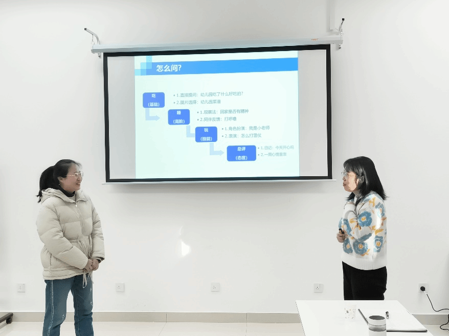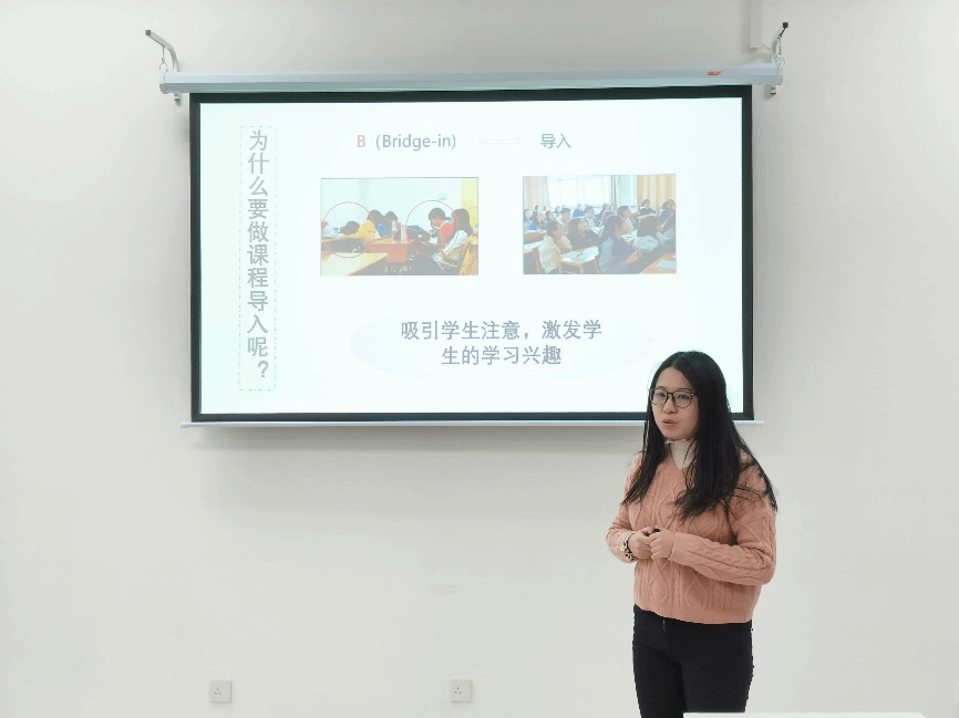 此次研討會將12名學(xué)員分為兩組,每組負(fù)責(zé)BOPPPS六個環(huán)節(jié)中的三個環(huán)節(jié)的推演和提煉。每個環(huán)節(jié)由一位教師代表進(jìn)行演示并闡述10分鐘,期間全體成員做針對性的建議與評價。其中,六個環(huán)節(jié)的闡述分別由王雪飛、張絢、左玉婷、李敏、任潔、年玥六位老師負(fù)責(zé)凝練和講解。