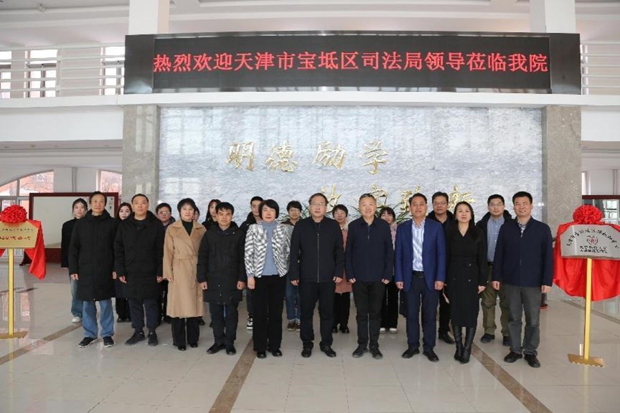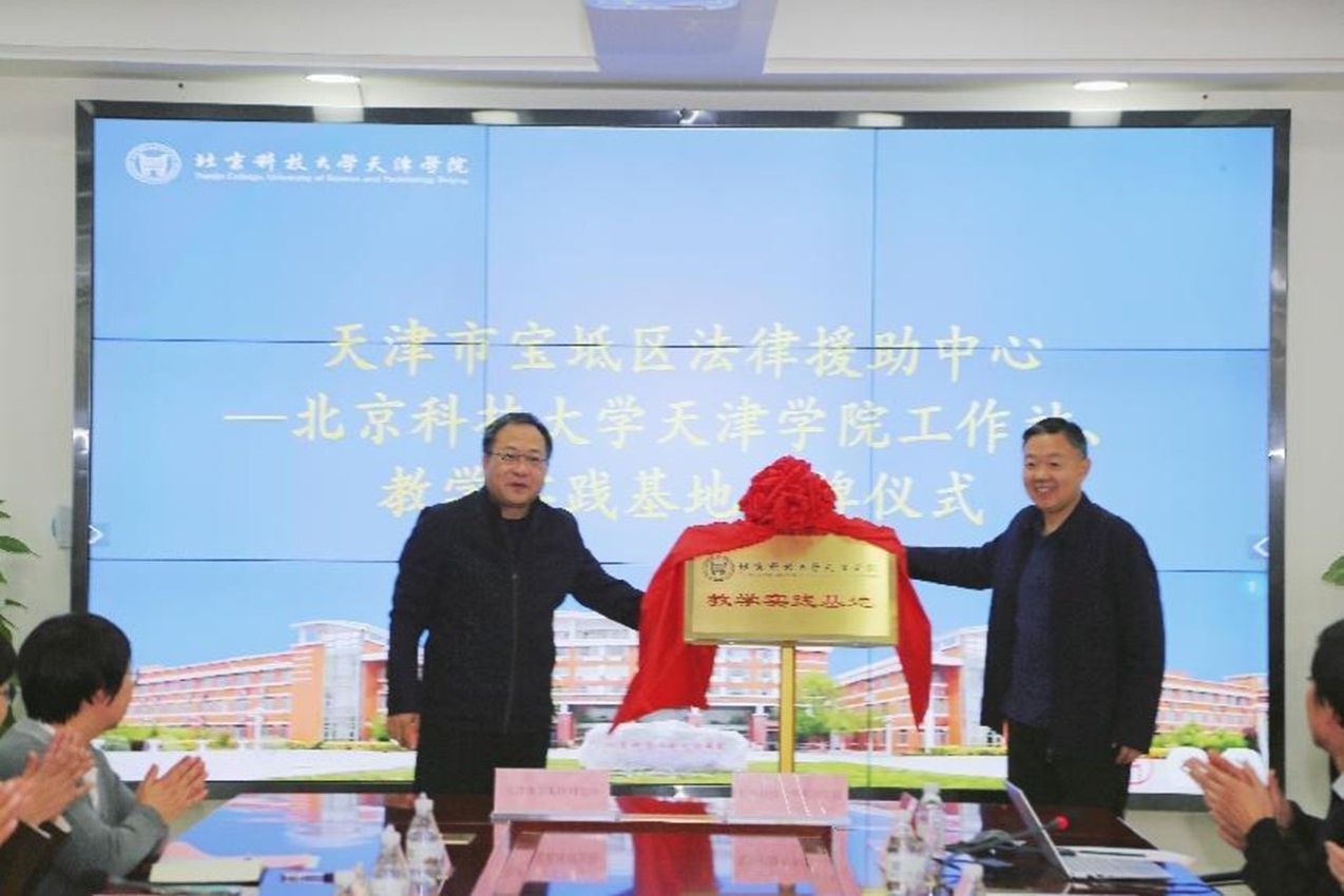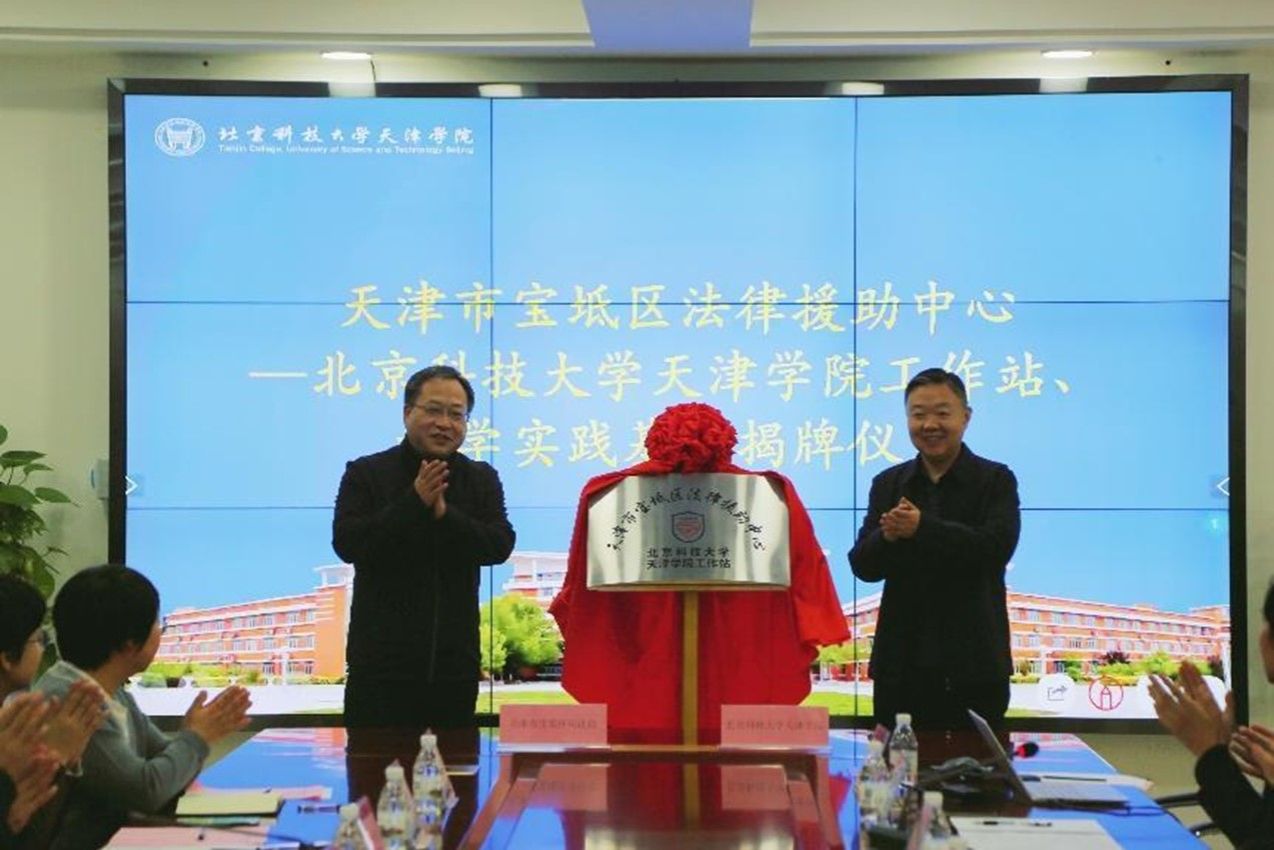 高萬通局長和丁煦生院長共同為“天津市寶坻區(qū)司法局法律援助中心-北京科技大學(xué)天津?qū)W院工作站”、“北京科技大學(xué)天津?qū)W院教學(xué)實踐基地”揭牌。