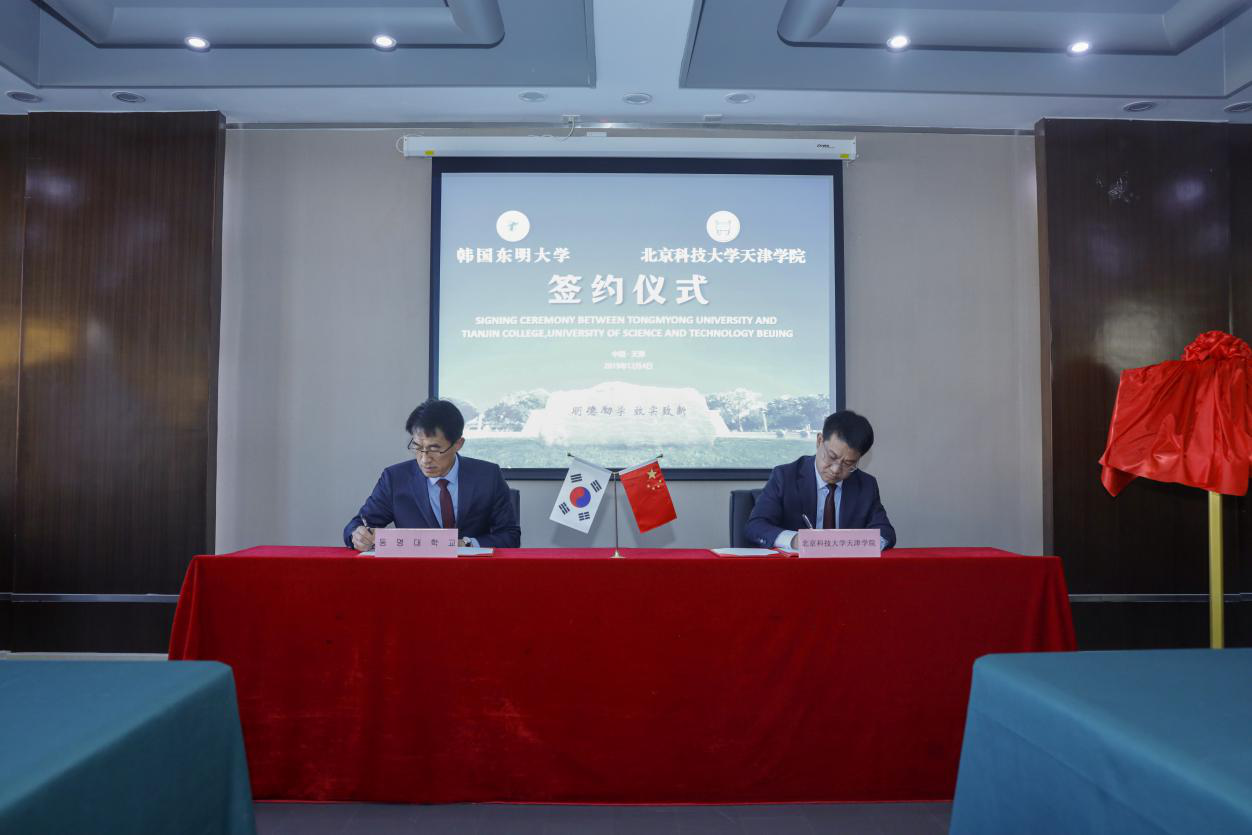12月4日上午,韓國東明大學與北京科技大學天津學院合作簽約儀式在理工館舉行。韓國東明大學副校長權重洛、東明大學留學主管王東等一行四人,天津學院院長王斌,副院長兼黨委副書記葉振楠,財務總監王俊敏,院長助理兼學術委員會主席宋存義及相關部門領導出席簽約儀式。