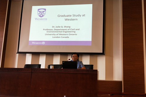 尚教授還以自己所在的單位加拿大西安大略大學為例,從如何申請、錄取、課程安排、結課考試、生活等方面進行了深入的講解,增加了金沙城js93線路檢測中心學生對出國留學的基本了解和興趣,學生們積極提問,尚教授一一進行了解答。當問到她個人成長經歷時,她認為每個人的成長軌跡不盡相同,最重要的是早早給自己設立一個目標,并堅持不懈地付出努力,“一分耕耘、一分收獲”,“機會總是留給有準備的人”。