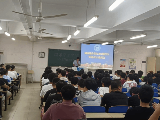動員大會由城市建設學院楊建功和石曉娟老師主持,城市建設學院黨總支書記何歡歡老師首先作動員講話,她提醒同學們關注自身學業情況,強調畢業設計在大學階段所處的重要位置,建議同學們把握住秋季招聘會的機會,多多投遞簡歷進行面試,希望每一位同學都能夠完成屬于自己的高質量就業。