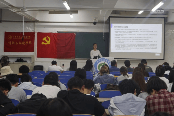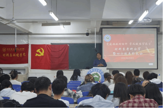 出席此次會(huì)議的師生有材料與環(huán)境學(xué)院黨總支書記張飛鵬老師、材料科學(xué)與工程系副主任王洪濤老師、雙語(yǔ)骨干教師王雪飛老師、全體輔導(dǎo)員以及有考研意向的學(xué)生共200余人。大會(huì)由材料與環(huán)境學(xué)院分團(tuán)委書記劉武輝老師主持。