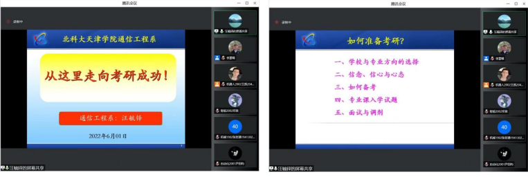 通信工程系主任汪毓鐸教授作了以“從這里走向成功!”為題的專題宣講,詳細介紹了近年來全國考研形勢、招生規模、國家政策、考研意義,從“學校與專業選擇”、“信念、信心與心態”、“如何備考”、“專業課入學試題”、“面試與調劑”等多個方面為同學們做了規劃。