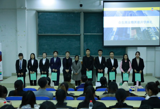 接下來,第二屆“精英班”優秀學生代表發言,代表新生感謝合生商業和學院提供的寶貴的機會并保證必將不斷的提升自己,不負大家的殷切希望。各位領導為新生頒發了開學禮品。