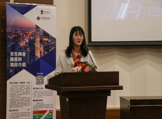 合生商業人力資源與行政管理部培訓總經理沈寧首先致辭。沈總對參加第二屆 “精英班”宣講會的兩院兩百多名同學表示熱烈歡迎和誠摯問候并對合生商業企業和“精英班”項目進行了詳細介紹。