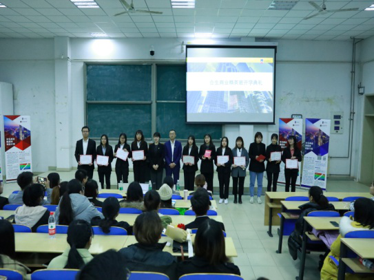 然后,第一屆“精英班”優秀學生代表做了心得分享。他們代表第一屆“精英班”全體學員對合生商業和學院表示由衷的感謝并決心以更大的成果回饋社會。沈總和王總為同學們頒發了第一屆“精英班”結業證書并合影留念。
