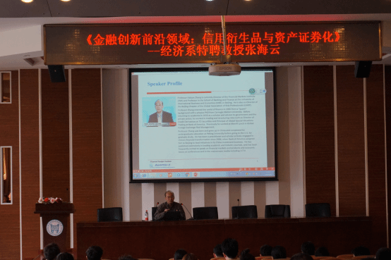 2016年5月9日下午13點,經濟系特聘教授、對外經濟貿易大學金融市場研究中心主任、金融學院教授張海云,在理工圖書館學術報告廳,開展了關于“金融創新前沿領域:信用衍生品與資產證券化”為主題的學術講座。來自各系部的十余名教師和百余名學生參加了本次講座。
