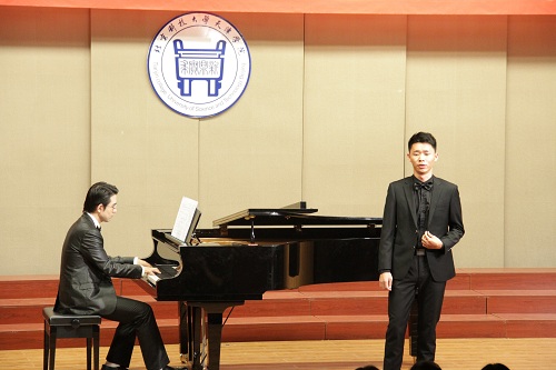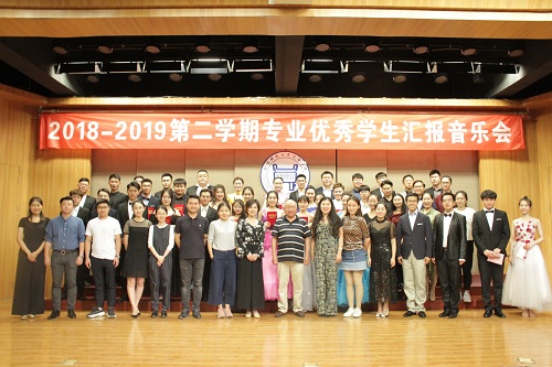 為深入學(xué)習(xí)貫徹習(xí)近平總書記提出的“不忘初心、牢記使命”主題教育工作會(huì)議及重要講話精神,增強(qiáng)學(xué)生們的舞臺(tái)表演實(shí)踐能力,介于中華人民共和國成立70周年之際,藝術(shù)學(xué)院聲樂教研室、鋼琴教研室以及作曲與基礎(chǔ)理論教研室于9月25日在12教學(xué)樓弘藝音樂廳舉辦了“2018-2019學(xué)年第二學(xué)期專業(yè)優(yōu)秀學(xué)生匯報(bào)音樂會(huì)”。音樂系主任胡建華教授,藝術(shù)學(xué)院黨總支書記、副院長林碧蕓,藝術(shù)學(xué)院辦公室主任兼音樂系辦公室主任杜洋,音樂系聲樂演唱教研室主任高麗、鋼琴演奏教研室主任王欣、作曲與基礎(chǔ)理論教研室主任陳倩同藝術(shù)學(xué)院音樂系兩百余名師生觀看了本場演出。