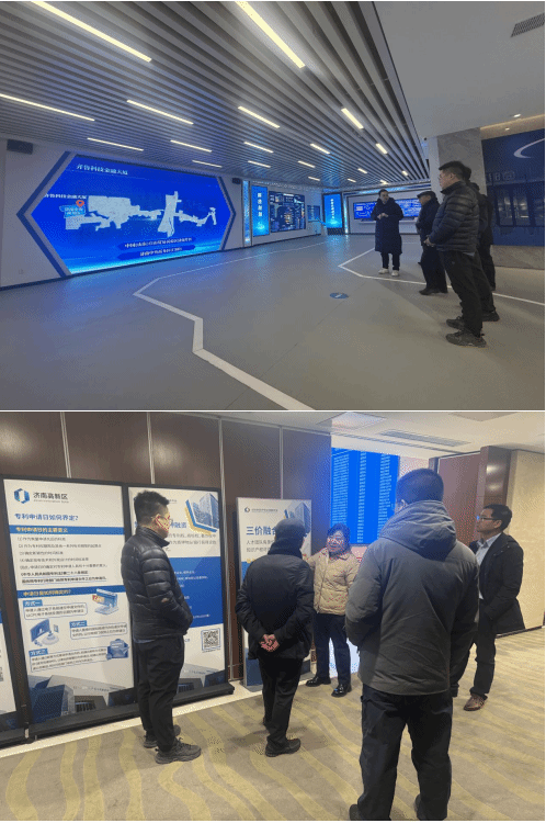 1月17日,在夏傲福董事長的引薦和陪同下,天津學院一行參觀了齊魯科技金融大廈、山東科技大市場和山東省知識產權公共服務平臺等單位,實地考察了山東省知識產權服務行業的最新動態。