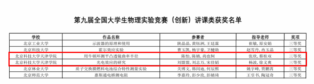 本次全國大學生物理實驗競賽歷時3個月,比賽共吸引了來自清華大學,北京大學等全國602所高校的2340支隊伍參賽,參賽學生人數達13170人。在學院的大力支持下,由實驗室管理中心張欣老師、蔡桂雙老師、楊波老師、徐義爽老師擔任指導教師,從金沙城js93線路檢測中心眾多學子中選拔出的6名優秀選手組建兩支代表隊參賽。指導老師與團隊成員精心設計比賽選題,合理規劃講課流程,合理分工協同作戰,經過兩個多月的努力,陳怡、陳婧、尚也軻的作品《用牛頓環測平凸透鏡曲率半徑》,劉盟盟、劉志萬、宋佳韜的作品《光電效應的研究》均獲得三等獎。