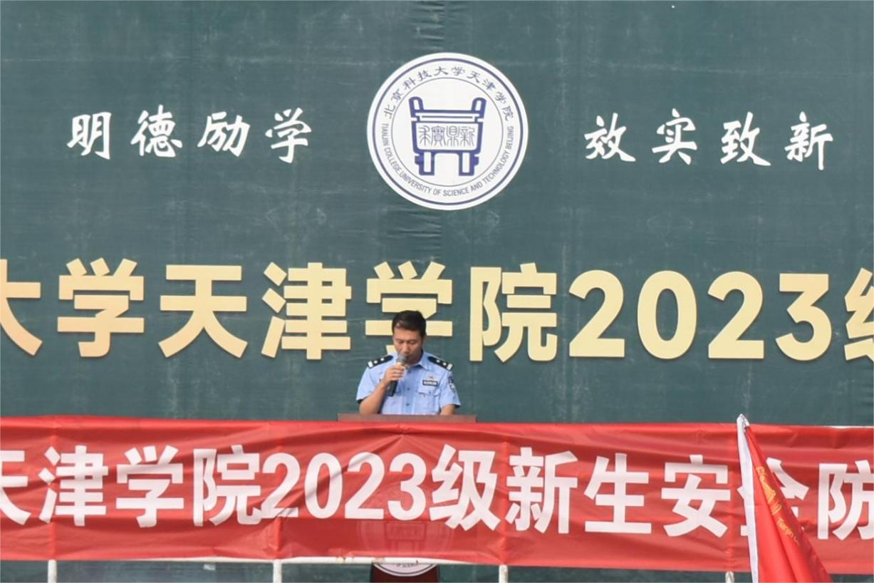 為幫助新生樹立安全理念,提升安全防范意識,增強(qiáng)自我保護(hù)能力,9月16日上午,學(xué)院邀請京津新城派出所所長李立軍警官、京津新城派出所民警丁玉東警官在學(xué)院西操場軍訓(xùn)現(xiàn)場,為2023級4400余名新生開展安全防范知識專題講座。