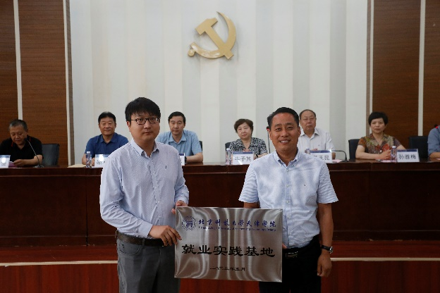 學(xué)院副院長張永鋒向企業(yè)代表授予就業(yè)實踐基地牌匾