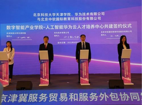 8月31日,京津冀服務貿易和服務外包協同發展論壇在北京舉行。學院院長、黨委書記丁煦生受邀參加此次論壇,并與華為技術有限公司和北京中軟國際教育科技股份有限公司簽定合作協議,共建數字智能產業學院—人工智能華為云人才培養中心,聯合培養新一代信息技術產業及數字經濟產業的緊缺人才。