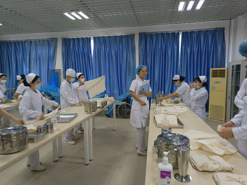 護(hù)理系楊新月主任親自承擔(dān)專題講座,全體教師在楊新月主任的領(lǐng)導(dǎo)與影響下,加班加點(diǎn)、有條不紊地推進(jìn)學(xué)生在校的教學(xué)計(jì)劃,提前將護(hù)理操作的視頻、操作流程以及評(píng)分標(biāo)準(zhǔn)發(fā)給學(xué)生,要求做好預(yù)習(xí),同時(shí)按照以往要求,嚴(yán)格檢查學(xué)生儀容儀表和著裝,以護(hù)士行為準(zhǔn)則規(guī)范學(xué)生行為,提倡理論與示教相結(jié)合,重視示范操作、強(qiáng)化練習(xí)和考核,將實(shí)訓(xùn)室作為病房,模擬人為病人,以分組練習(xí)和個(gè)別指導(dǎo)的方式,保證操作的準(zhǔn)確性。學(xué)生們的學(xué)習(xí)熱情高漲,大家已經(jīng)忘記了天氣的炎熱,將全身心投入到每一堂課,以便更好地掌握理論和操作技能。