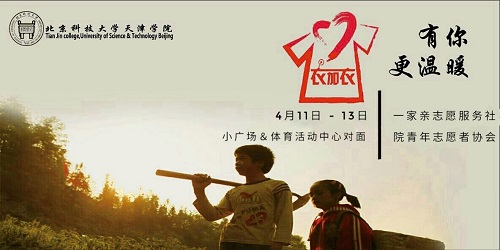 2017年4月11日至13日,北京科技大學(xué)天津?qū)W院青年志愿者協(xié)會與寶坻區(qū)“一家親”志愿服務(wù)社聯(lián)合開展了為期三天以“衣加衣,我們一直在行動”為主題的舊衣捐贈再利用環(huán)保公益活動。本次活動共募集愛心物資120余袋,包括...