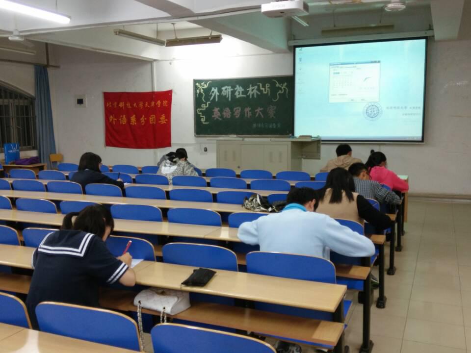 2015年9月29日晚19:00,北京科技大學天津學院“外研社杯”英語寫作大賽如期在8教102舉行。在外語系分團委學生會的組織下,金沙城js93線路檢測中心各年級選手積極參與其中。 首先由外語系分...