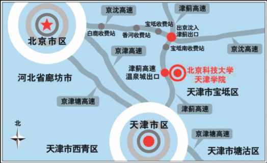 一、北京科技大學(xué)天津?qū)W院交通位置圖